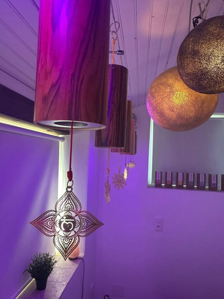 -Des carillons suspendus, accordés aux fréquences des chakras